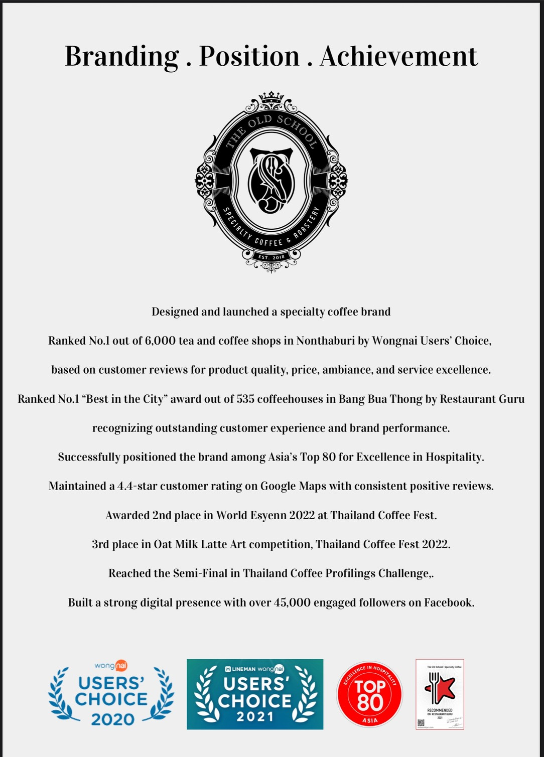 5th Consistent Award Winning Year! Brandscapestudio Architect, Exterior, Interior ,Landscape, Branding, Design See Our Projects 123 Fifth Avenue, Lane no 17, New York brandscapestudio Design Philosophy ออกแบบคาเฟ่ Design philosophy Brand - Driven Design ออกแบบโดยยึดยึดแก่นของแบร์ด ไม่ใช่แค่ความสวยงาม ช่วยให้สถาทื่มีตัวตนชัด และกลายเป็น “เครื่องมือสื่อสาร” Holistic Perspective มองงานออกแบบทั้ง Btanding, Marketing และ Operation เข้าใจตั้งแต่ภาพลักษณ์จนถึงการใช้งานจริงของลูกค้าและทีมงาน Business Insight มีประสบการณ์ในการสร้างแบรนด์และทำธุรกิจ เข้าใจความต้องการของเจ้าของธุรกิจอย่างแท้จริง ไม่ใช่แค่มุมของนักออกแบบ Selecttive Project Partner ไม่รับทุกงาน แต่เลือกทำเฉพาะที่เชื่อว่า “เวริ์ค” ทำให้สามารถโฟกัสและลงรายละเอียดกับแต่ละโครงการได้ลึกจริง Our Recent Beyond Design : Real Business Outcomes Design, branding, and business outcomes from projects we built and operated ourselves. Designed and launched a specialty coffee brandRanked No.1 out of 6,000 tea and coffee shops in Nonthaburi by Wongnai Users’ Choice,based on customer reviews for product quality, price, ambiance, and service excellence. NY Interior Design Firm of The Year - 2020 US Best Interior Firm - 2020 International Design Awards Nominee - 2019 View Award Every Space Count Every Space Count Our Works Hospitality & LifestyleCafe - Resturant - Nightclub - Wedding studio - Hotel resort - Pool Villa - Cruise Residential& Private SpaceRescidence - Renovation - Condominium - Townhome - Pool Villa Community DevelopmentCommunity Mall - MArket - Avanue - Clubhouse - Hospital project shocase Brandscape studio project Showcase This is a short description elaborating the service you have mentioned above. Our Awards
